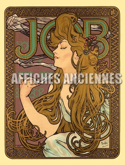 REPRODUCTION AFFICHE ANCIENNE MUCHA PAPIER CIGARETTE JOB ART NOUVEAU 1900