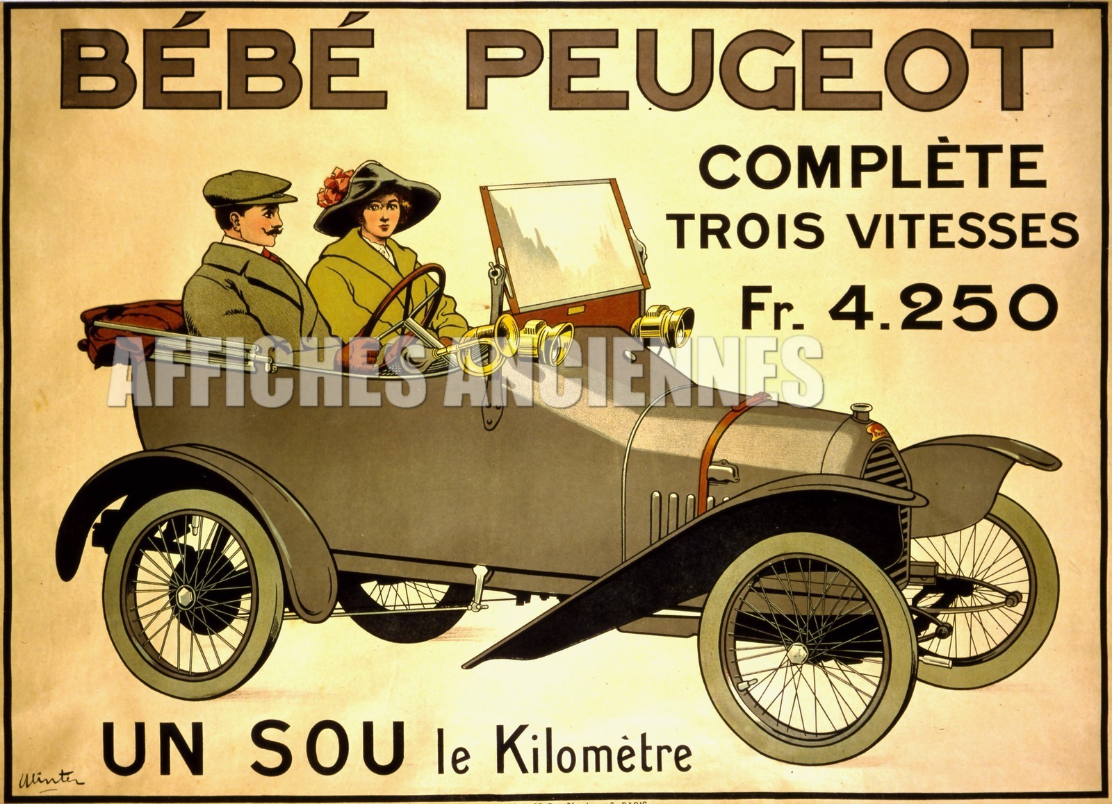 reproduction affiche ancienne voiture peugeot 3 vitesses