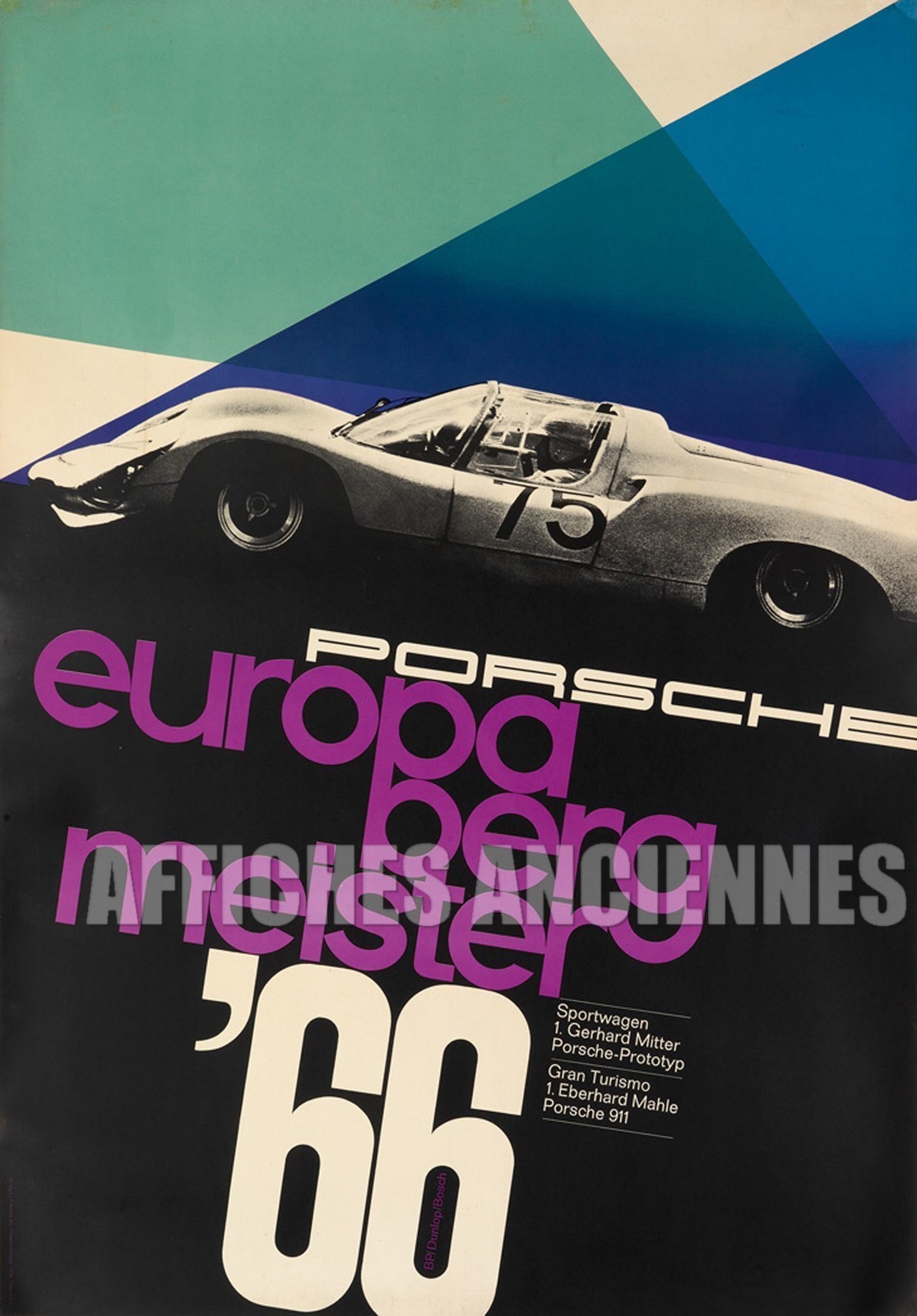 Reproduction d'affiche ancienne Europa berg meister 1966 porsche