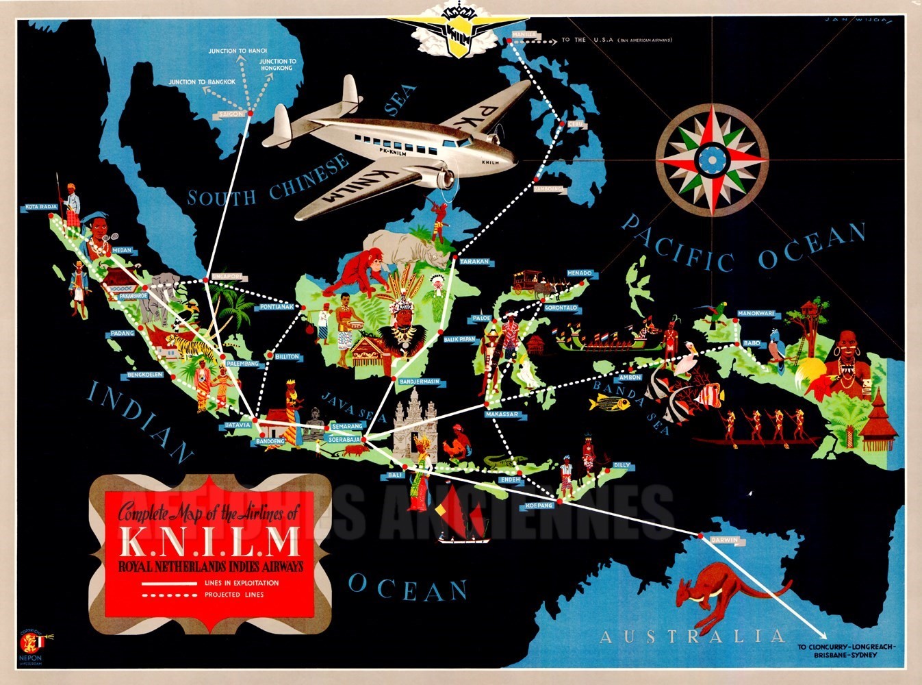REPRODUCTION AFFICHE ANCIENNE MAPPEMEONDE KLM