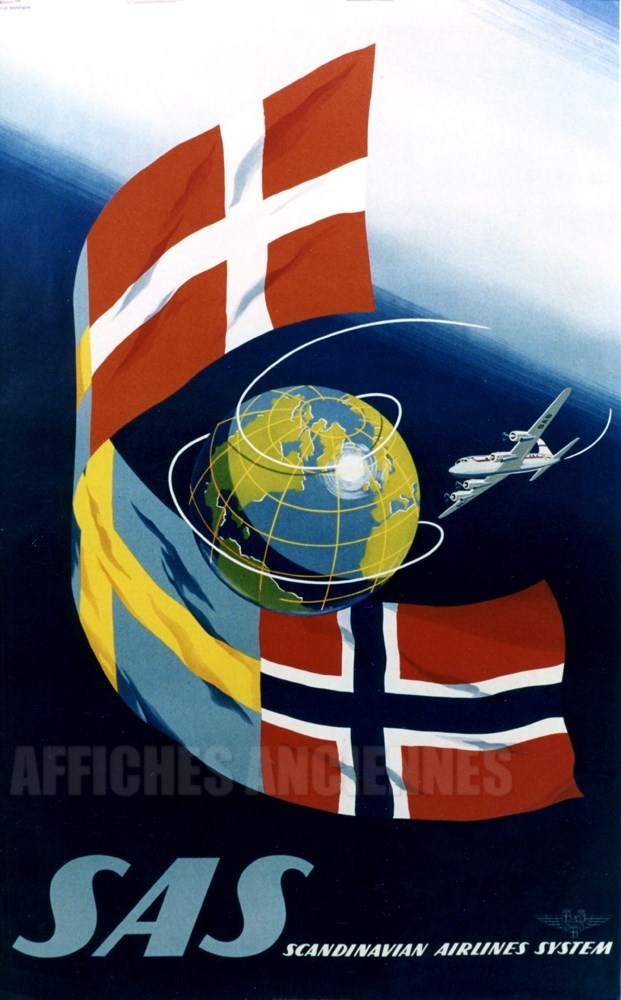 REPRODUCTION AFFICHE ANCIENNE SCANDINAVIAN AIRLINES
