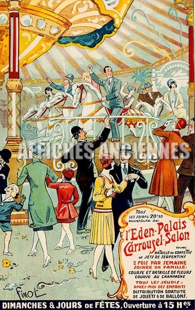 Reproduction affiche ancienne danse carrousel eden-palais Paris chevaux de bois art déco années 1930 format 40x60cm