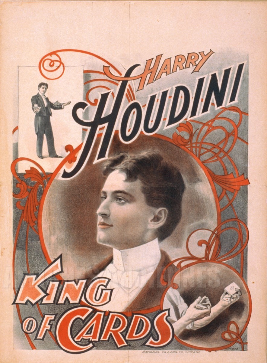 REPRODUCTION AFFICHE ANCIENNE MAGIE HOUDINI ROI DU TOUR DE CARTES