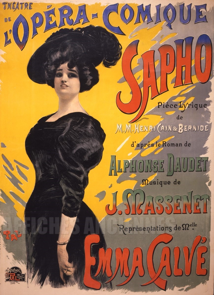 REPRODUCTION AFFICHE ANCIENNE OPERA COMIQUE SAPHO ALPHONSE DAUDET J. MASSENET EMMA CALVE