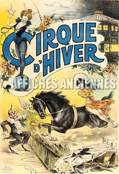 REPRODUCTION AFFICHE ANCIENNE PARIS CIRQUE D'HIVER CHEVAL ACROBATE CLOWN