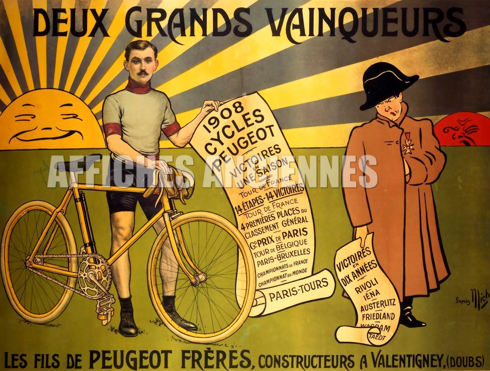 reproduction affiche ancienne bicyclette velo cycles peugeot
