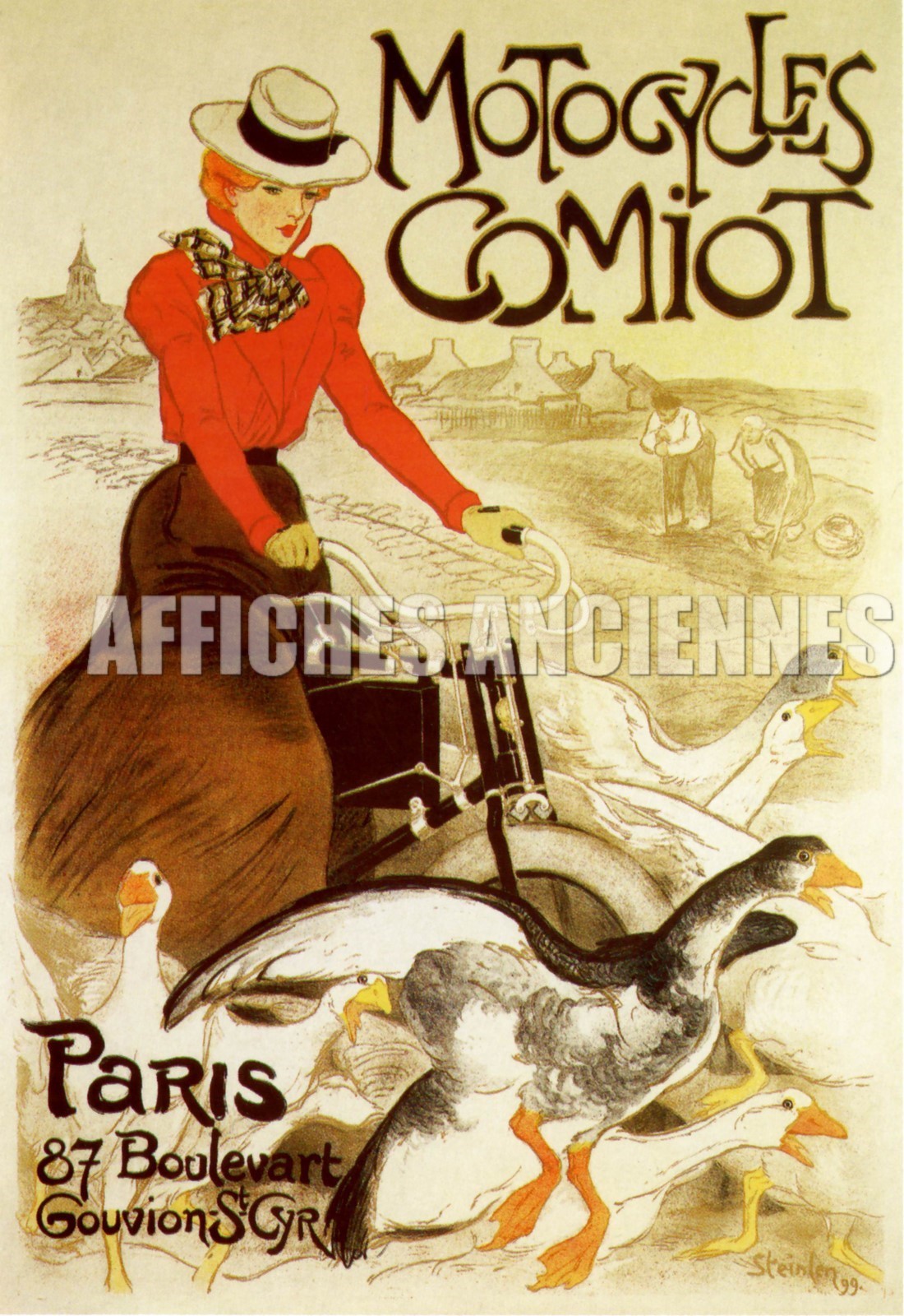 reproduction affiche ancienne velo bicyclette motocycles comiot paris boulevard gouvion saint-cyr