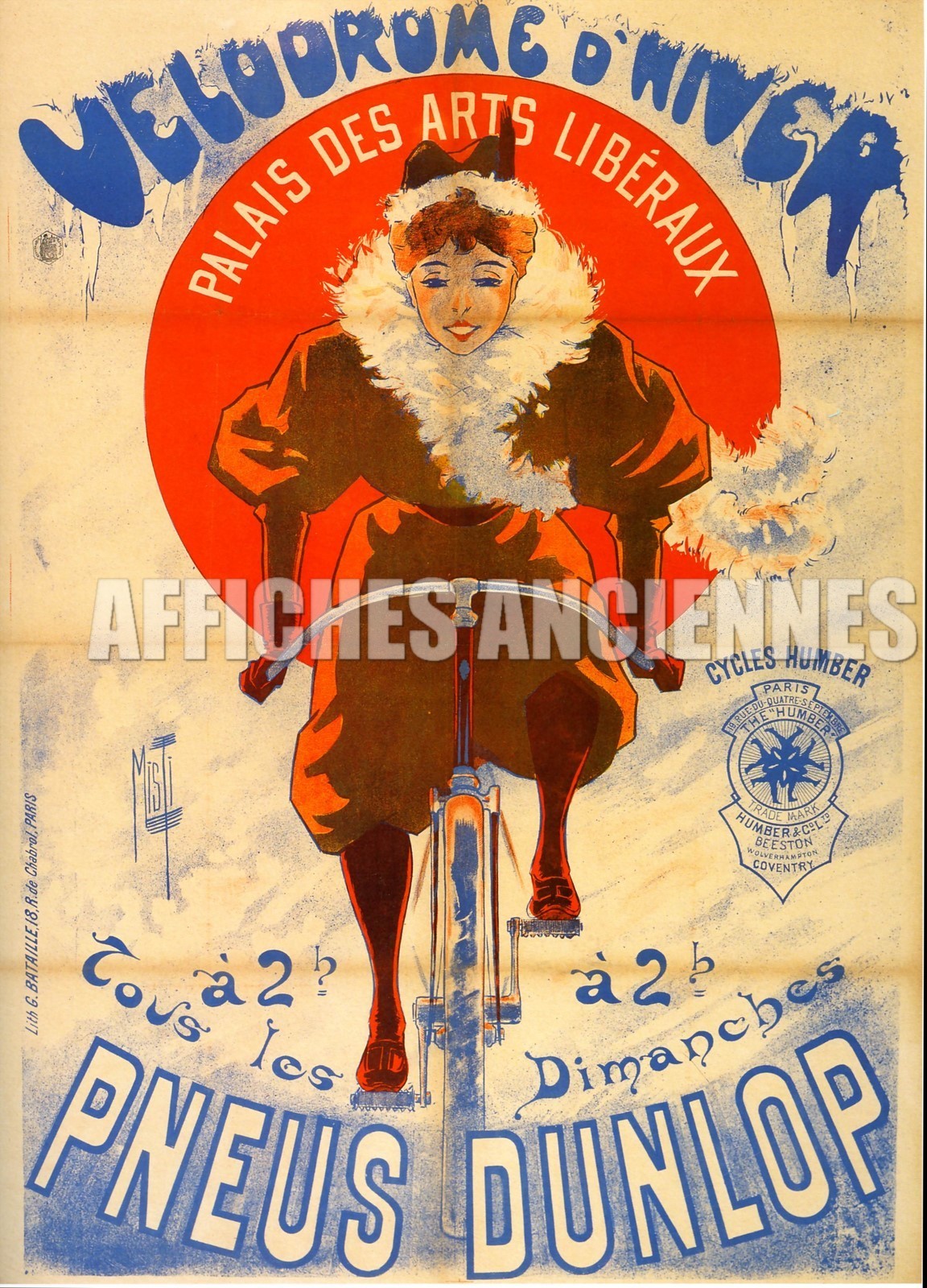 reproduction affiche ancienne vélo, bicyclette pneu dunlop vélodrome d'hiver