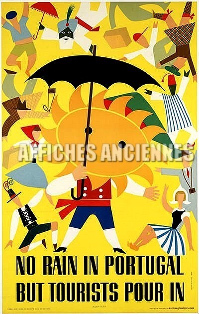 REPRODUCTION AFFICHE VOYAGE SUR LE PORTUGAL NO RAIN IN PORTUGAL PAS DE PLUIE AU PORTUGAL