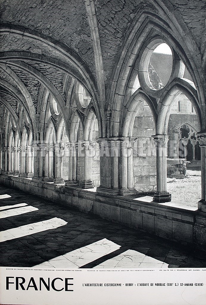 FRANCE BERRY ABBAYE DE NOIRLAC ARCHITECTURE CISTERCIENNE SAINT AMAND AFFICHE ORIGINALE FORMAT40X60 CM CIRCA 1960