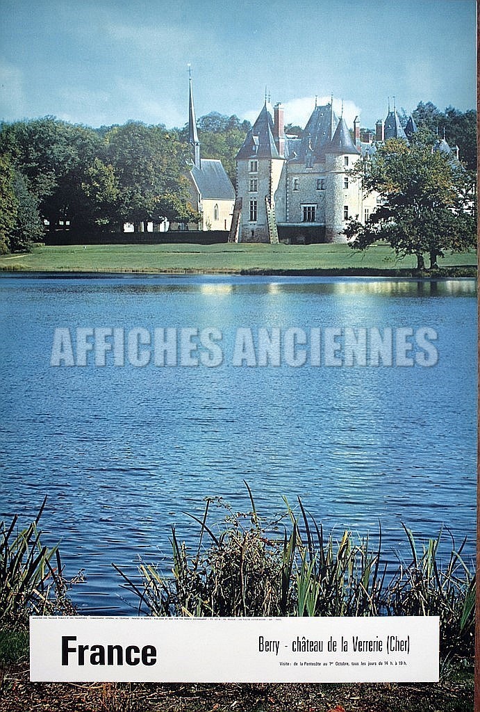 FRANCE BERRY CHATEAU DE LA VERRERIE CHER AFFICHE ORIGINALE FORMAT 40X60 CM CIRCA 1960