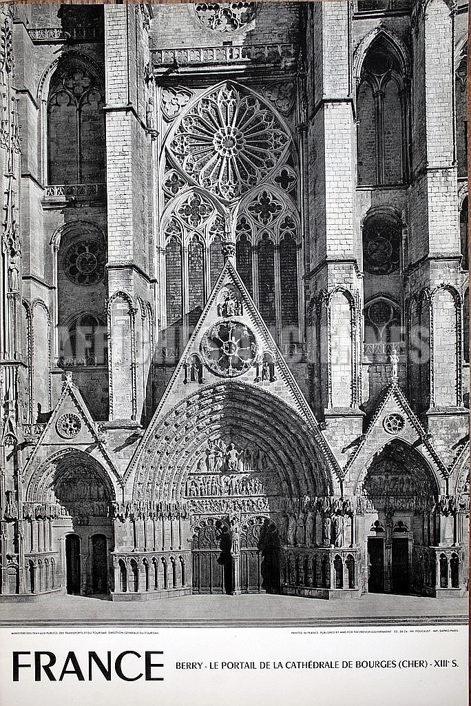 FRANCE BERRY LE PORTAIL DE LA CATHEDRALE DE BOURGES CHER AFFICHE ORIGINALE FORMAT 40X60 CM CIRCA 1960