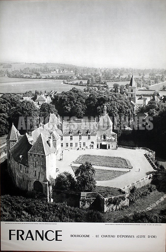 FRANCE BOURGOGNE LE CHATEAU D'EPOISSES AFFICHE ORIGINALE FORMAT 40X60 CM CIRCA 1960