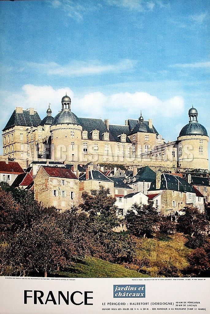 FRANCE PERIGORD DORDOGNE CHATEAU DE HAUTEFORT LASCAUX AFFICHE ORIGINALE FORMAT 40X60 CM CIRCA 1960