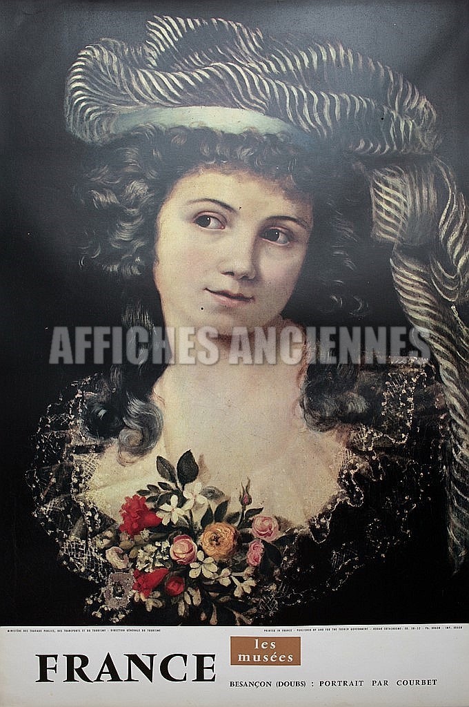 FRANCE MUSéE BESANCON DOUBS PORTRAIT PAR COURBET AFFICHE ORIGINALE FORMAT 40X60 CM CIRCA 1960
