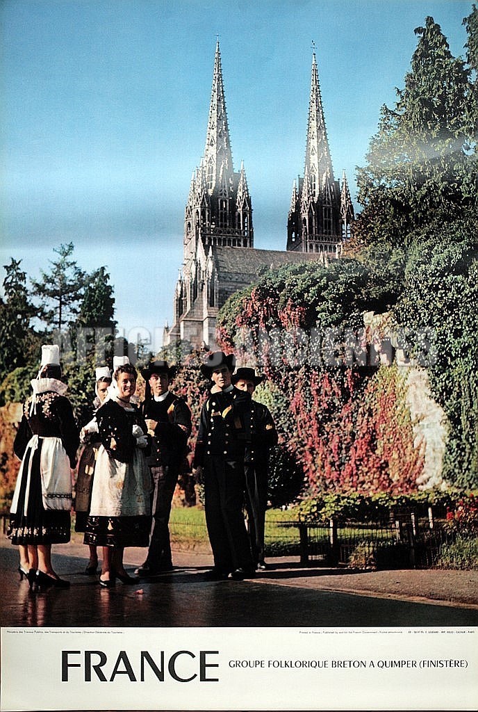 BRETAGNE COSTUMES ET COIFFES TRADITIONELS DE BRETAGNE QUIMPER AFFICHE ORIGINALE FORMAT 40X60 CM CIRCA 1960