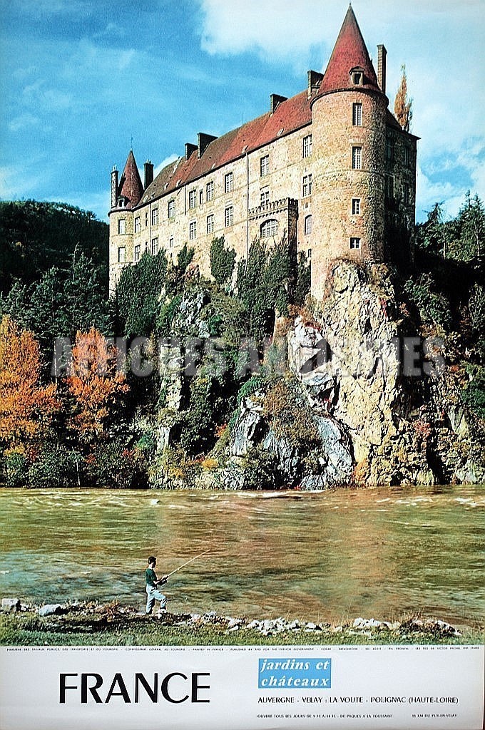 FRANCE LE CHATEA DE LA VOUTE POLIGNAC VELAY HAUTE LOIRE AFFICHE ORIGINALE FORMAT 40X60 CM CIRCA 1960