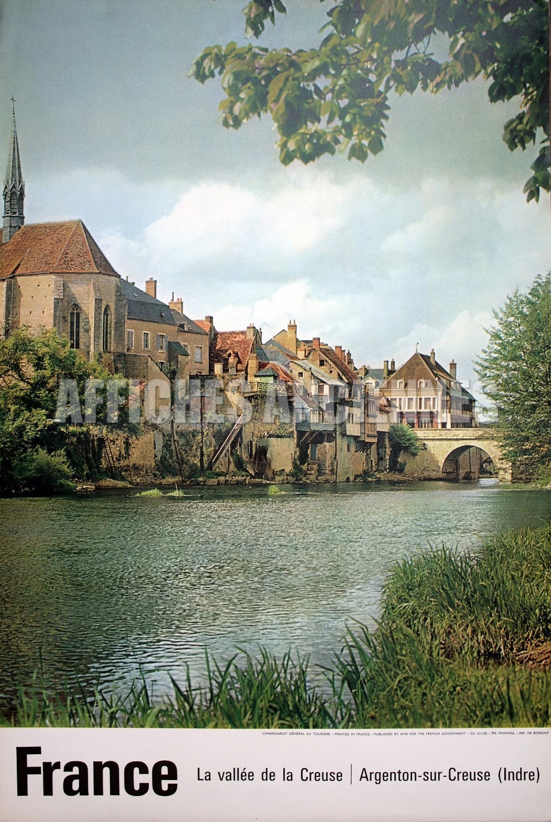 FRANCE LA VALLEE DE LA CREUSE ARGENTON SUR CREUSE AFFICHE ORIGINALE FORMAT 40X60 CM CIRCA 1960