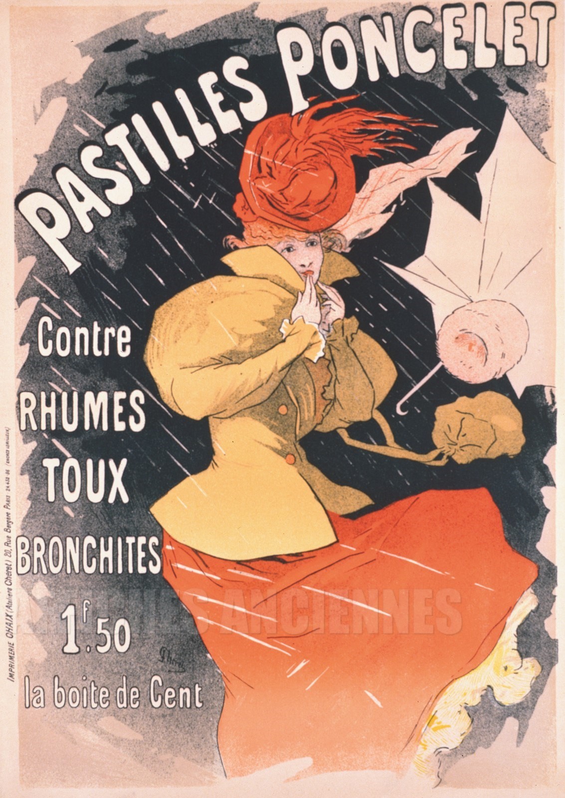 AFFICHE ANCIENNE PASTILLES PONCELET RHUMES TOUX