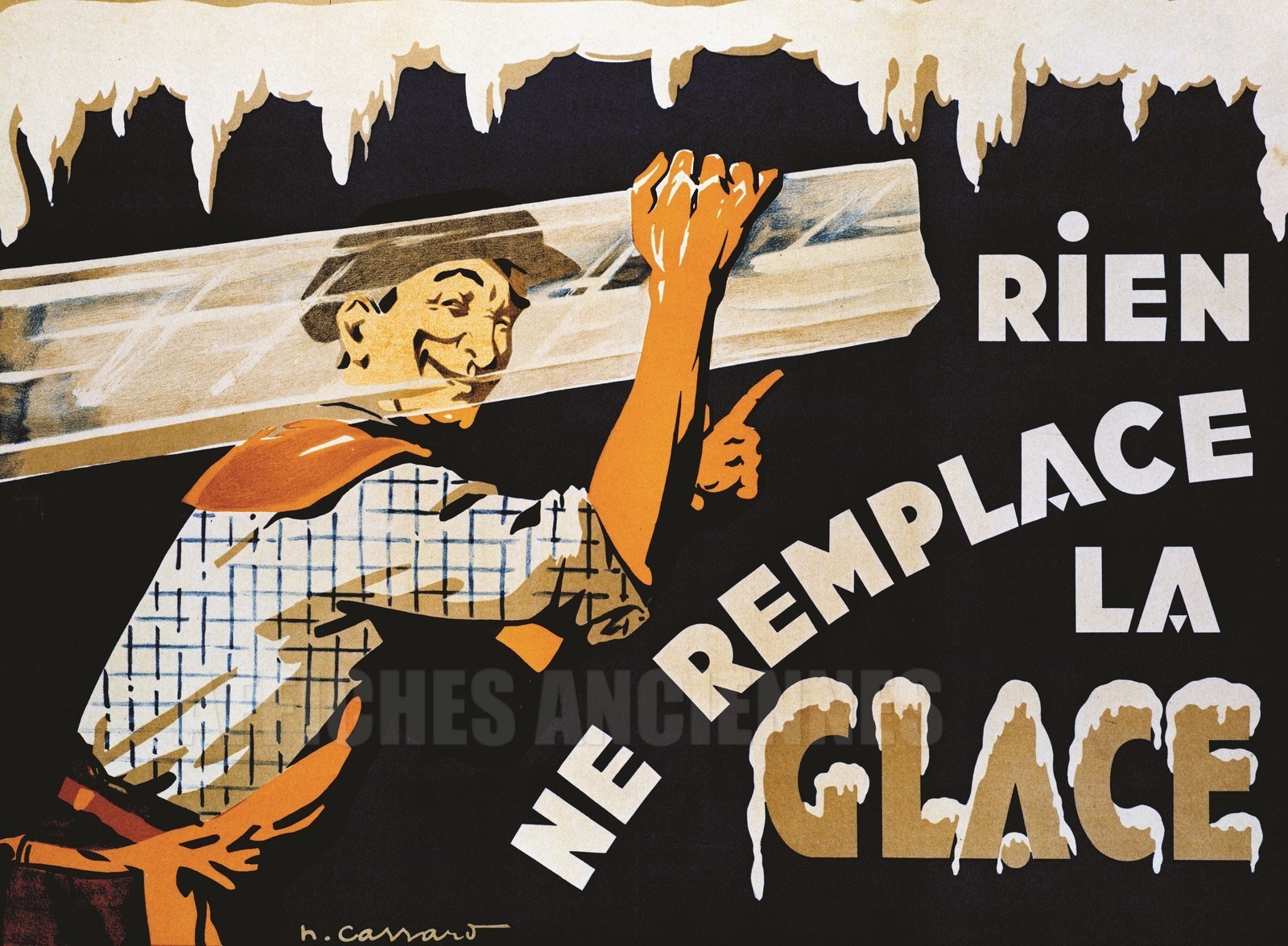 AFFICHE ANCIENNES RIEN NE REMPLACE LA GLACE CAFE BISTROT RESTAURANT LIVRAISON DE GLACE