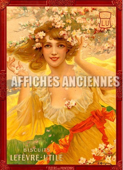 REPRODUCTION AFFICHE ANCIENNE BISCUITS LU LEFEVRE-UTILE FLEURS DE PRINTEMPS