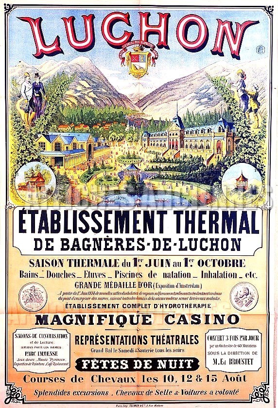 Luchon Pyrénées station thermale - thème Hygiène, beauté, thermalisme - reproduction numérique d'affiche ancienne