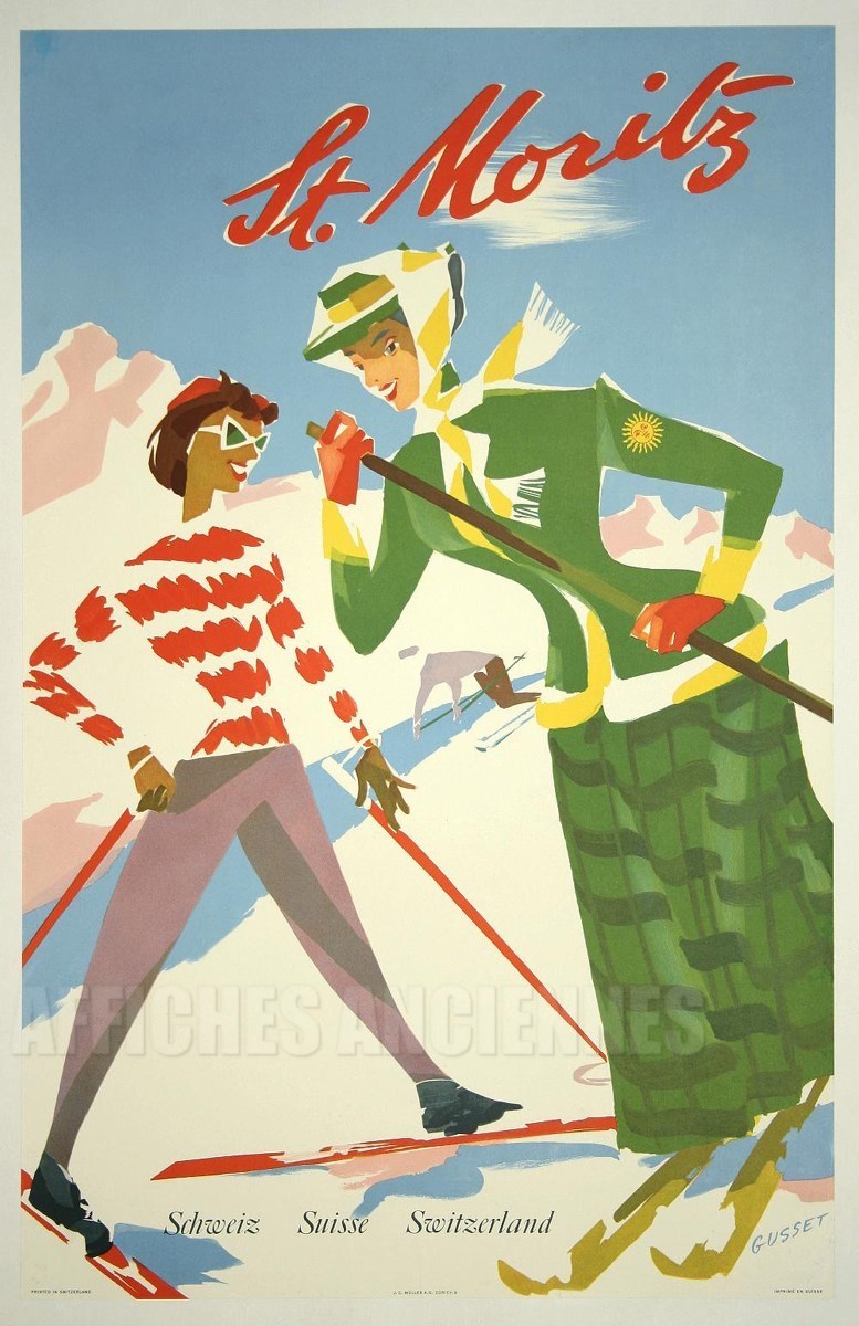 reproduction affiche ancienne AFFICHE SUR LE SKI SAINT MORITZ