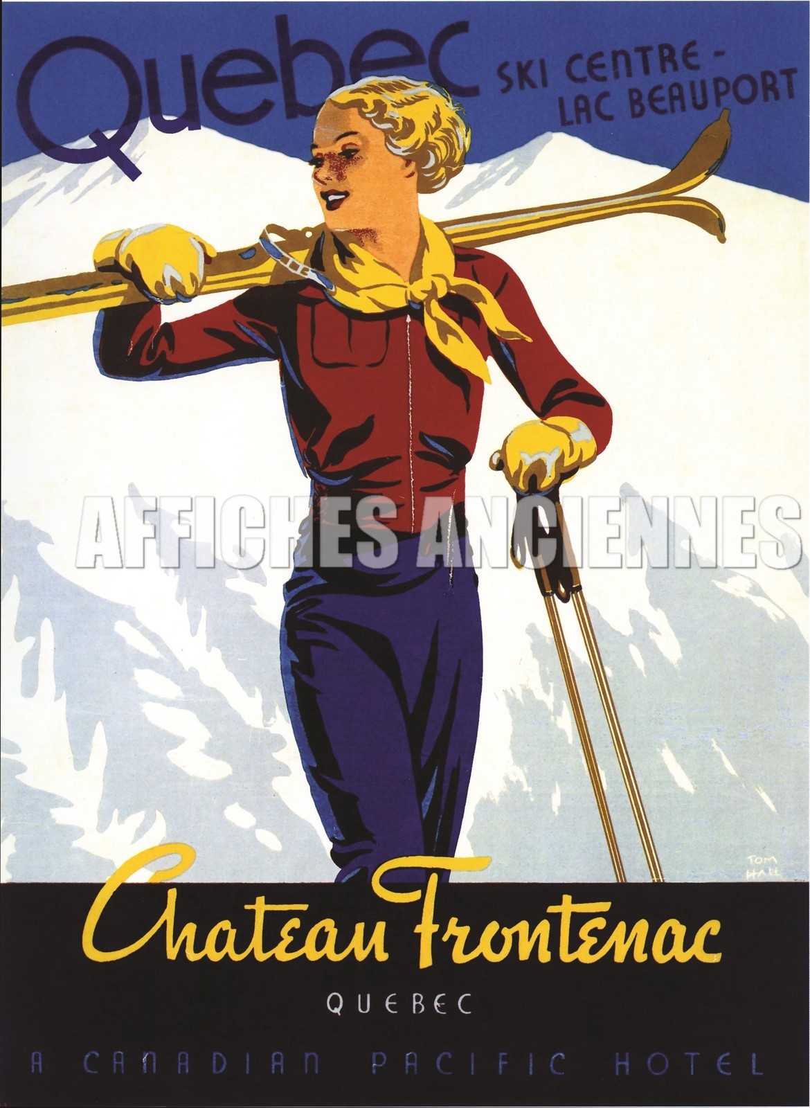 reproduction affiche sport d'hiver quebec chateau frontenac