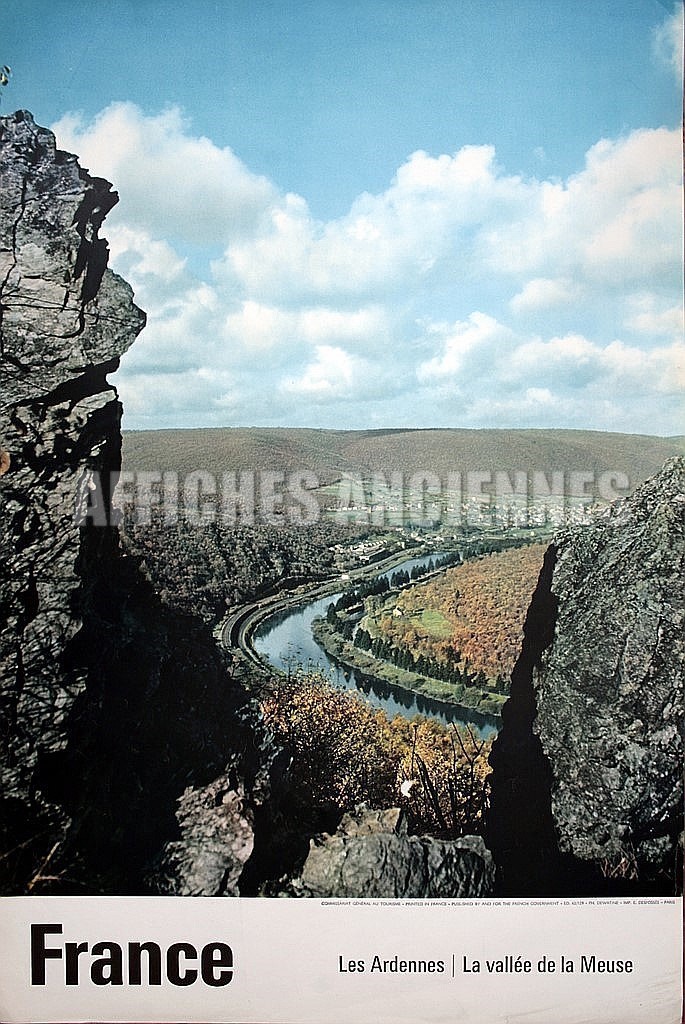 LES ARDENNES LA VALLEE DE LA MEUSE AFFICHE ANCIENNE ORIGINALE FORMAT 45X60 CM CIRCA 1960