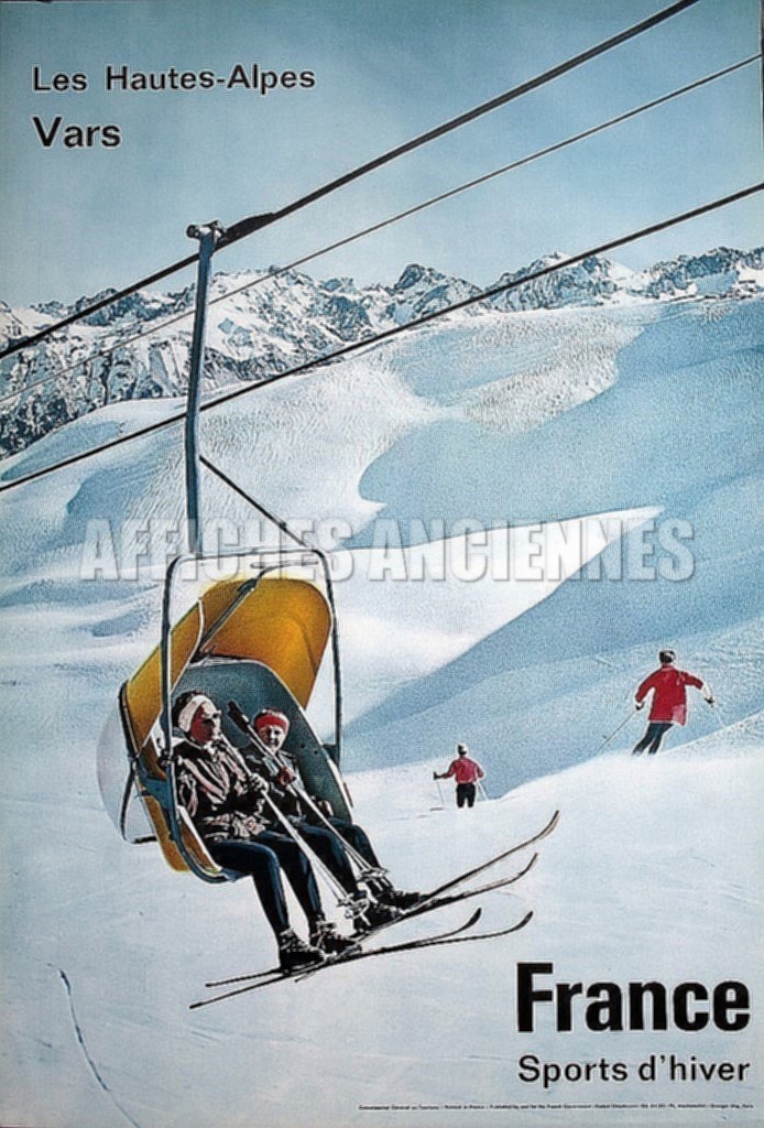 HAUTES-ALPES VARS ALPES DU SUD LE TELESIEGE A COQUE DE SAINTE MARIE DERRIERE LE MASSIF DE LA FONT SANCTE ET LE CHAMBEYRON AFFICHE ANCIENNE FORMAT 40X60CM CIRCA 1960